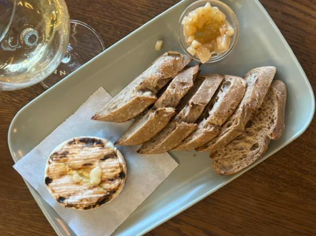 Brânză brie moale cu baghetă crocantă și o dulceață inedită de pere.