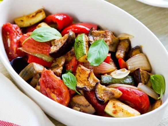 Vinete crocante, ardei gras, roșii cherry, ghimbir, sos teriyaki.