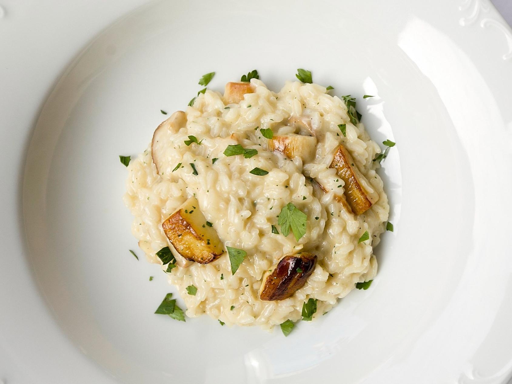 Risotto aromat cu hribi și parmezan.